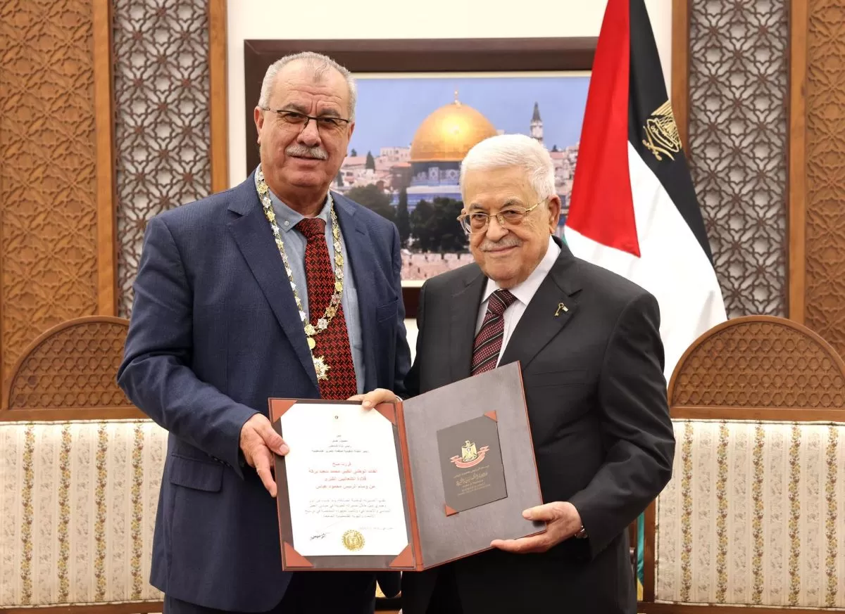 رام الله 5-1-2026 وفا- منح رئيس دولة فلسطين محمود عباس، القائد الوطني الكبير محمد سعيد بركة، الرئيس السابق للجنة المتابعة العليا للجماهير العربية في أراضي عام 1948، قلادة الكنعانيين الكبرى من وسام الرئيس محمود عباس.
