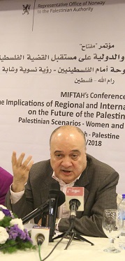 ونظمت المبادرة الفلسطينية لتعميق الحوار العالمي والديمقراطية "مفتاح" المؤتمر في رام الله وغزة عبر نظام "الفيديو كونفرس" تحت عنوان "تأثير التطورات الإقليمية والدولية على مستقبل القضية الفلسطينية.. الخيارات والبدائل أمام الفلسطينيين- رؤية نسوية وشبابية"، بدعم من الممثلية النرويجية.