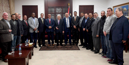 رام الله-اعلام فتح- استقبل رئيس دولة فلسطين محمود عباس، مساء أمس السبت، بمقر الرئاسة في مدينة رام الله، الوفود العربية المشاركة في منتدى" تنظيم وإدارة المهرجانات والعروض الرياضية"، الذي ينظمه المجلس الأعلى للشباب والرياضة بالتعاون مع جامعة الدول العربية، برئاسة المستشار عبد المنعم الشاعري مدير إدارة الشباب والرياضة في جامعة الدول العربية.