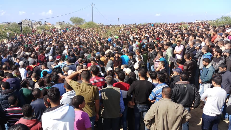 وشارك في تشييع الشهداء ممثلو الفصائل الوطنية، والإسلامية، والمجتمع الأهلي، والمدني، وسط حالة من الغضب والتنديد بجريمة الاحتلال الإسرائيلي، وأديت صلاة الجنازة على أرواحهم، ووروا الثرى في مقبرة الشهداء شرق المدينة.