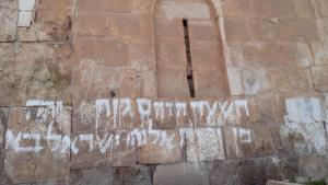 مستعمرون يخطون شعارات عنصرية على مدخل باب الرحمة الخارجي